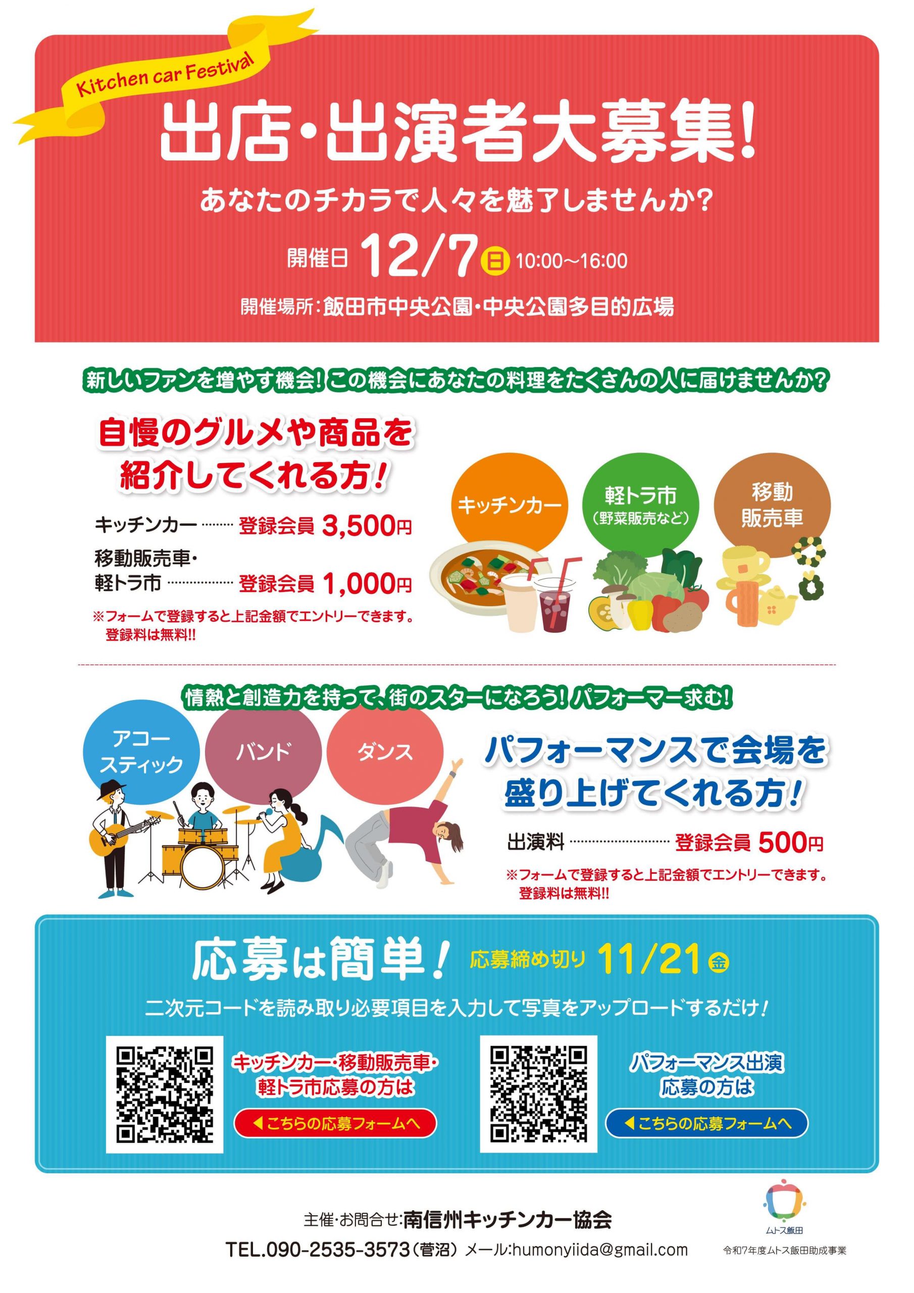 キッチンカーがあるところにイベントがあり、イベントがあるところにキッチンカーがある。イベントカレンダーを通じて、南信州を走るさまざまなキッチンカーを知っていただくとともに、地域の賑わいを創出するイベント主催者の皆さまへ、キッチンカー事業者やパフォーマーのご紹介など、コーディネートのサポートも行っています。地域イベントを盛り上げ、「南信州にキッチンカー文化を広げるお手伝い」ができれば幸いです。
